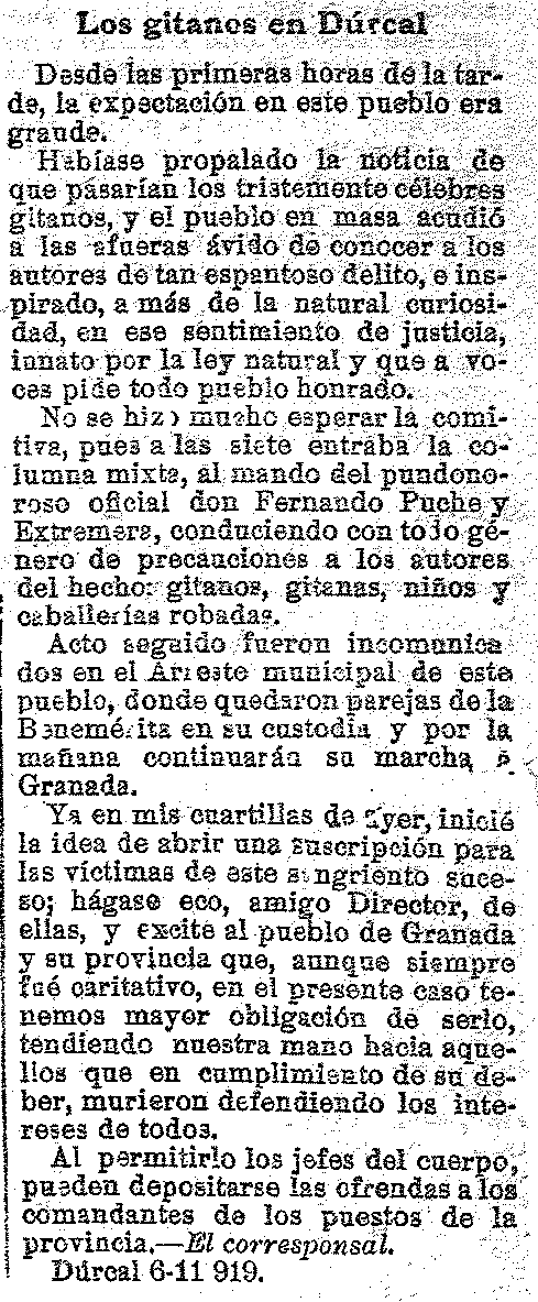 25 de noviembre de 1919. Detención en Dúrcal