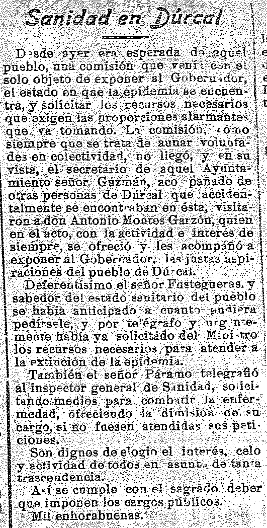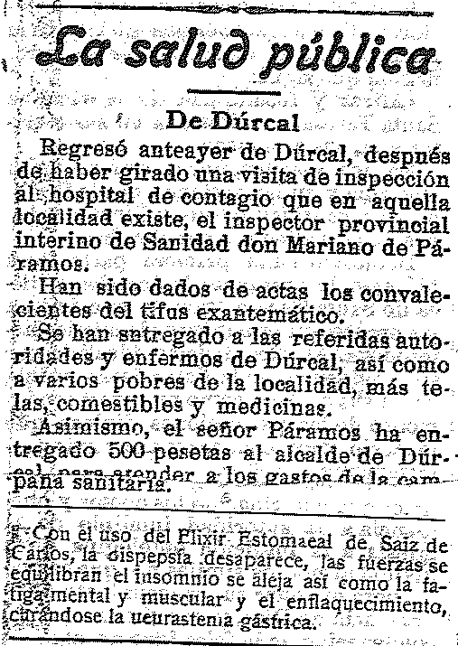 17 de octubre de 1919. La salud pública de Dúrcal. regresa el