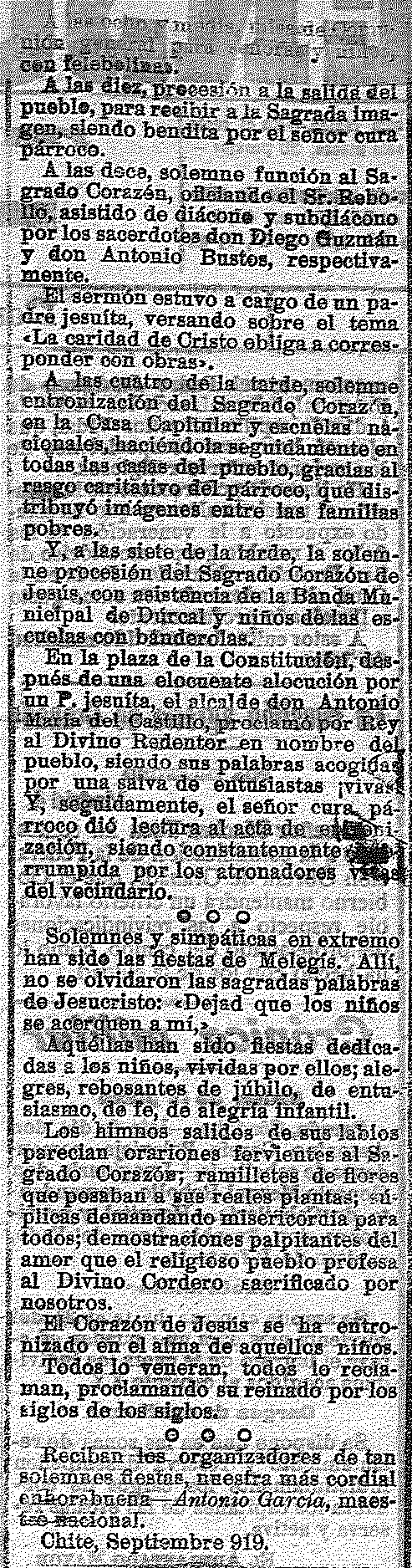5 de octubre de 1919. Melegís en fiestas. Entronación del