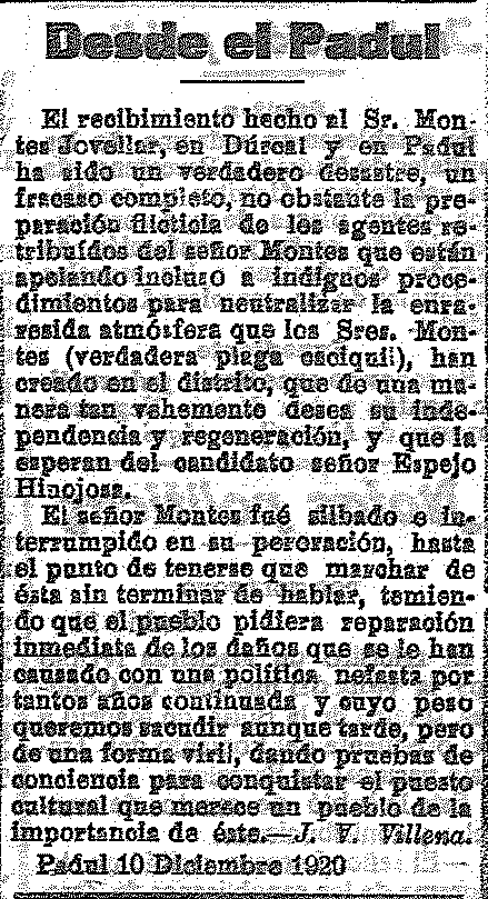 12 de diciembre de 1920. El Sr. Montes Jovellar, durante la