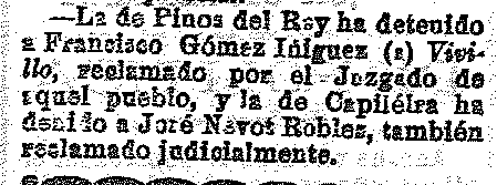 28 de diciembre de 1920. Detención en pinos del rey