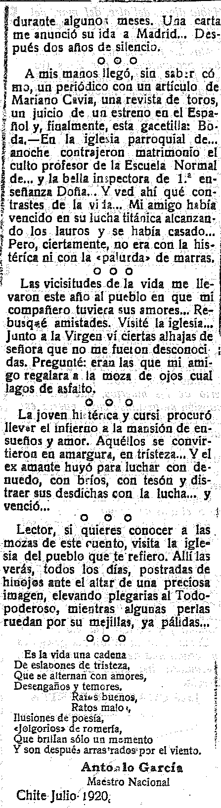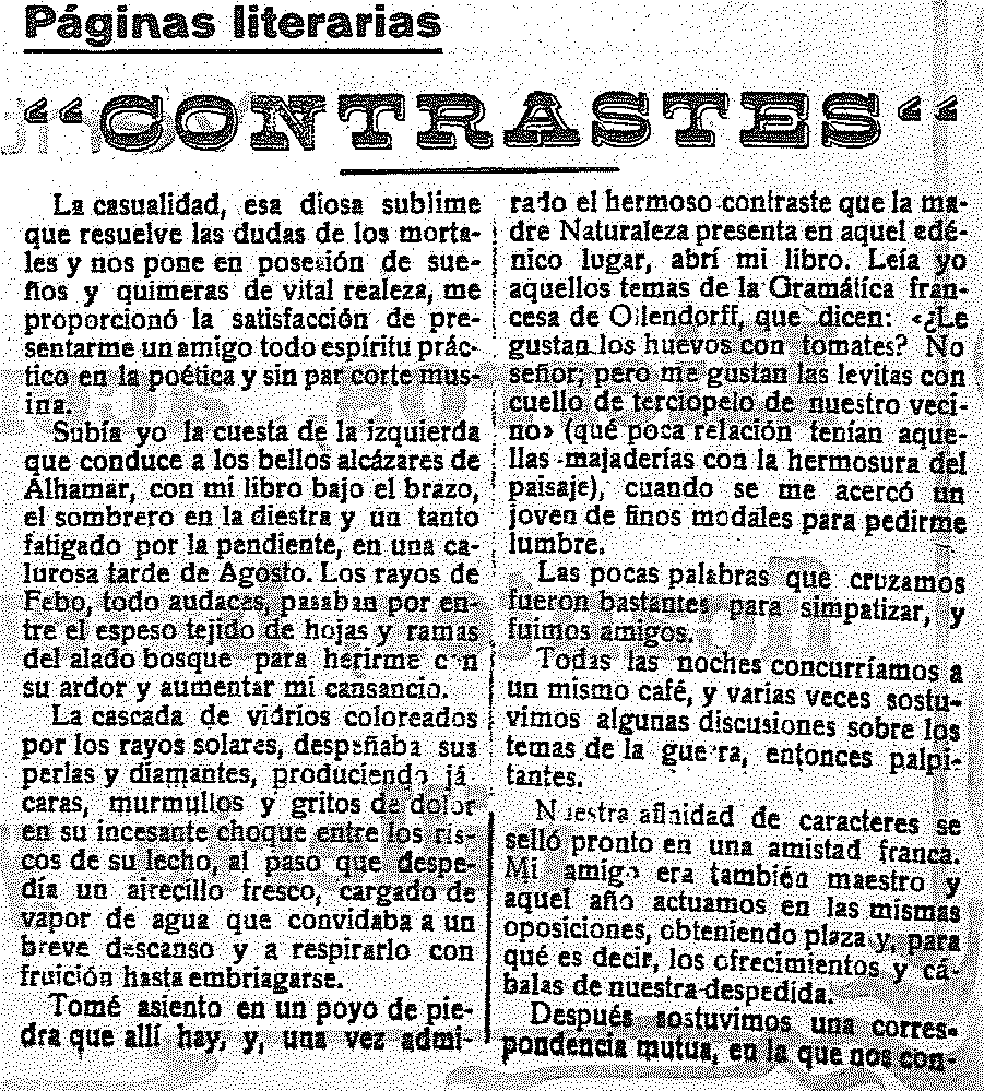 25 de julio de 1920. Páginas literarias. Contrastes. El