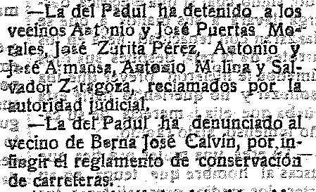 28 de julio de 1920. Detenciones en Padul y denuncia por