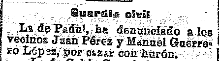 30 de julio de 1920. Denuncia en el Padul por cazar un hurón