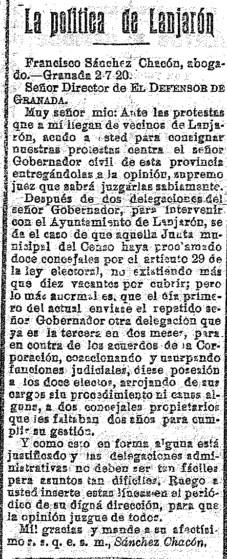 6 de julio de 1920. La política en Lanjarón con la elección