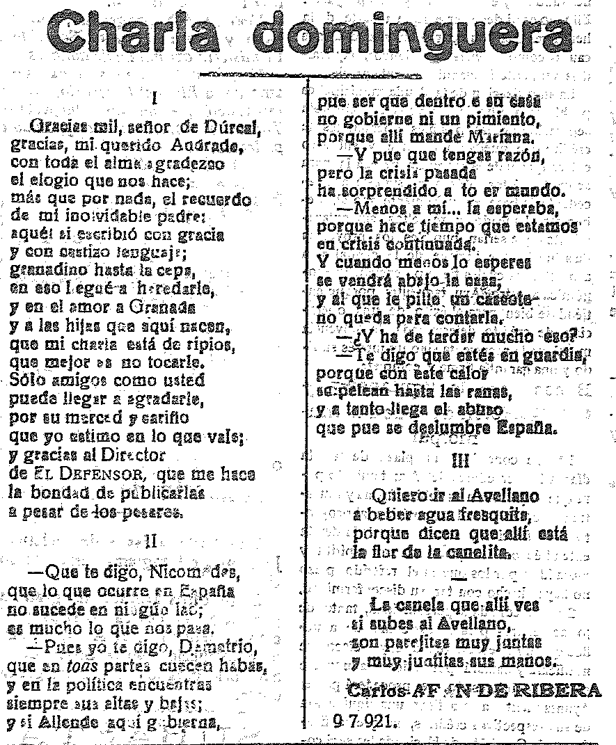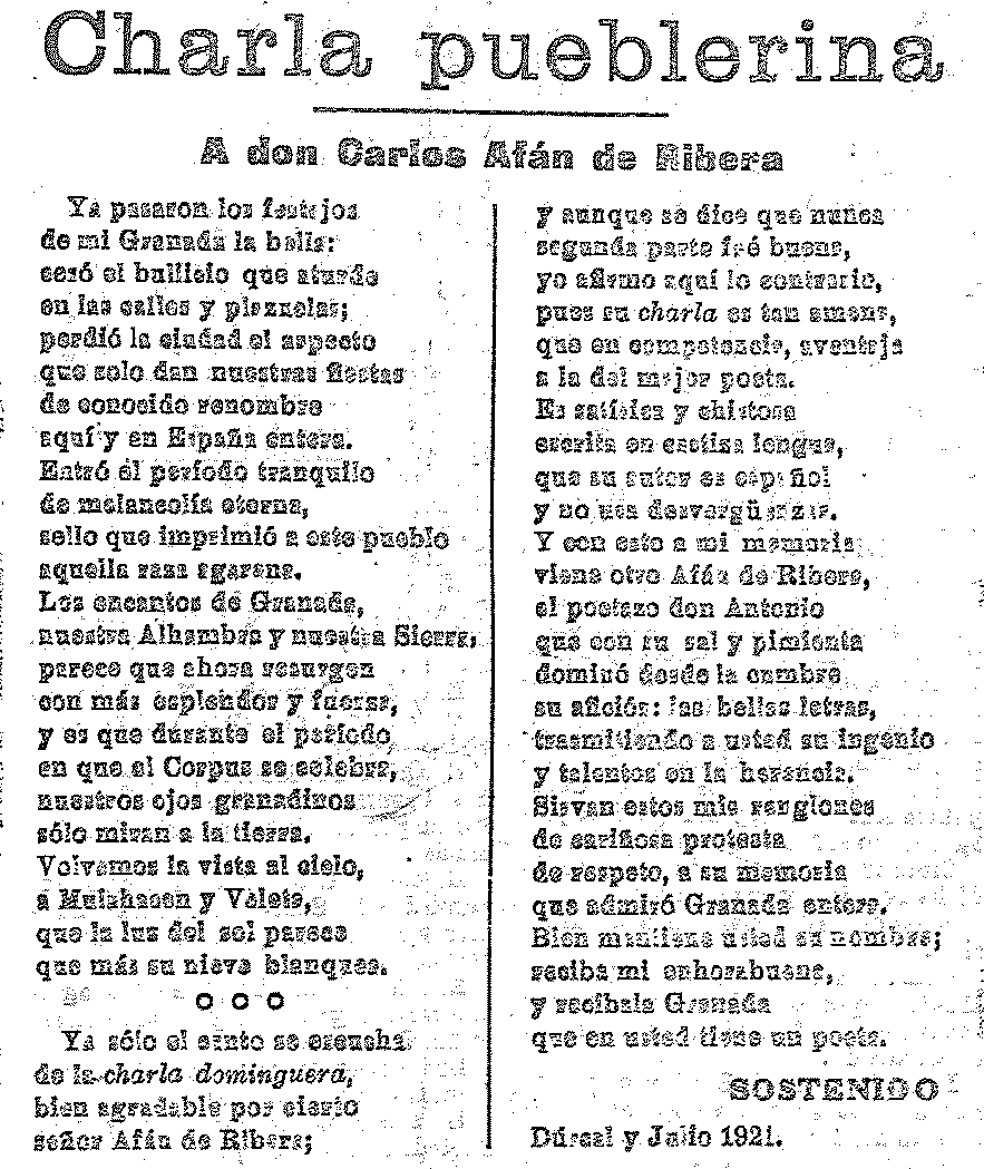 5 de julio de 1921. A don Carlos Afán de Ribera desde Dúrcal