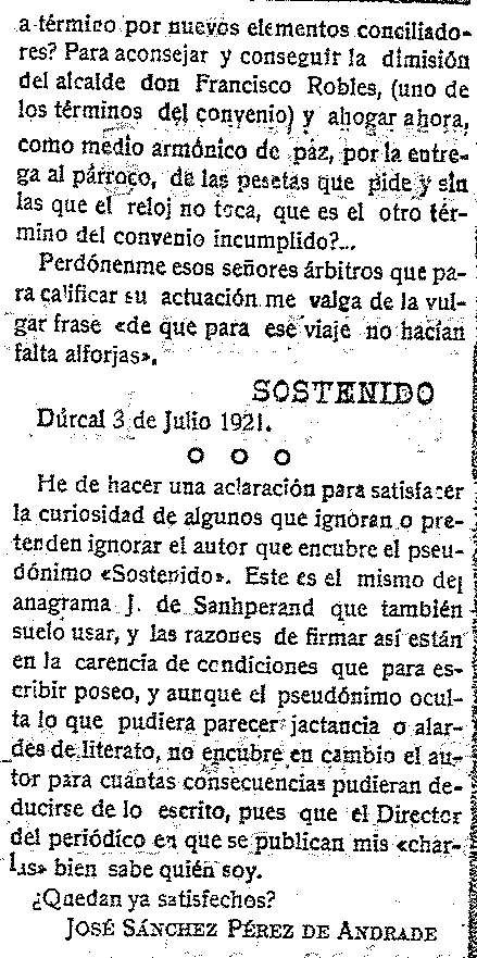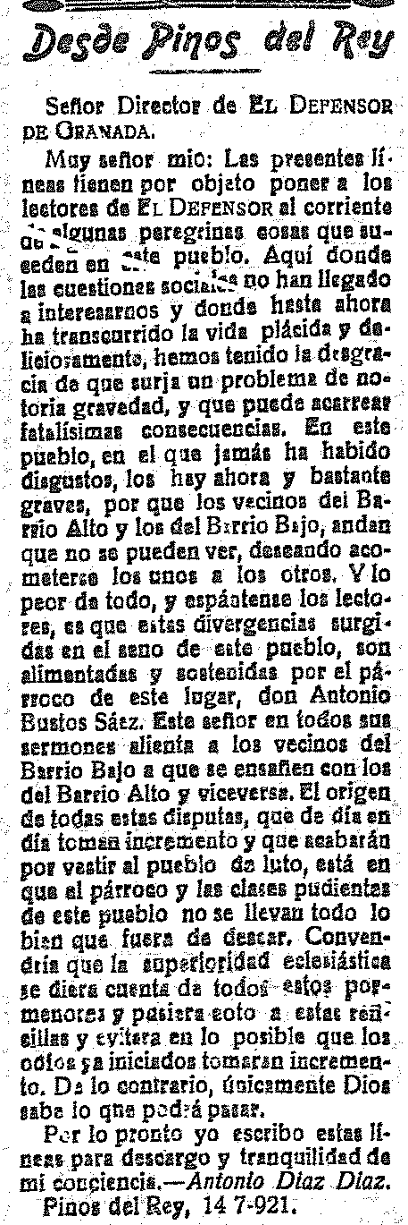 15 de julio de 1921. Enfrentamiento del párroco de Pinos del