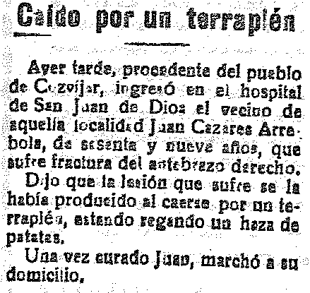 21 de julio de 1921. Se cae por un terraplén un vecino de
