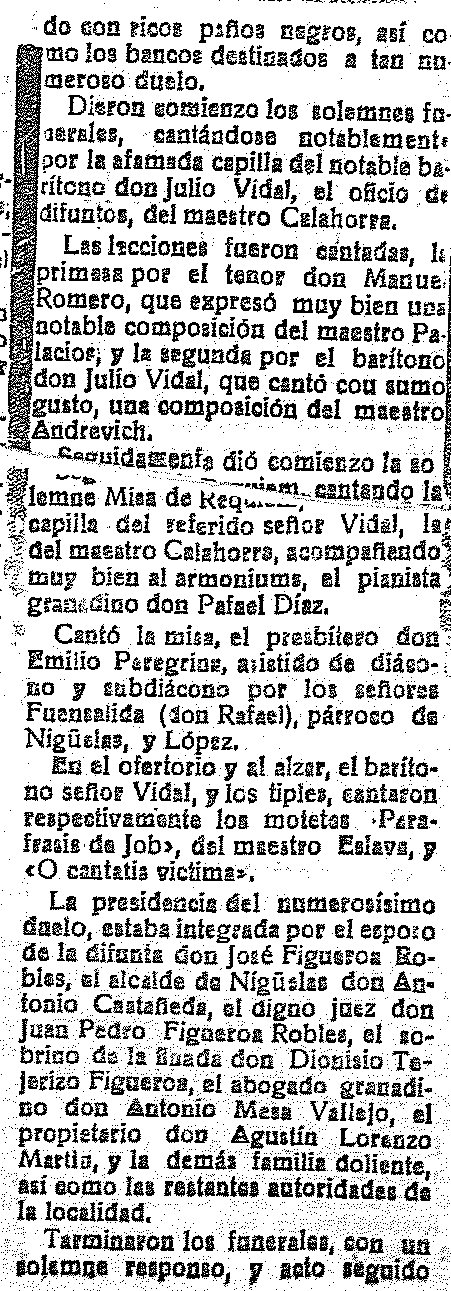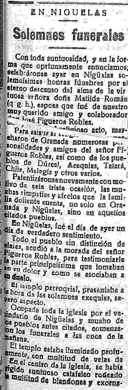 29 de julio de 1921. Solemnes funerales en Nigüelas de Doña