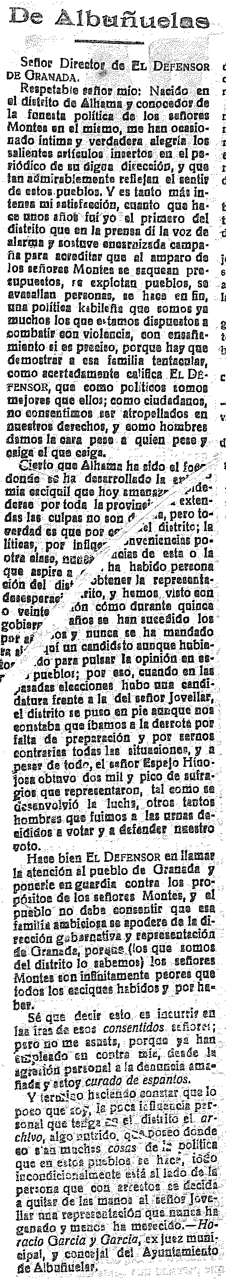 31 de julio de 1921. Desde Albuñuelas se quejan del