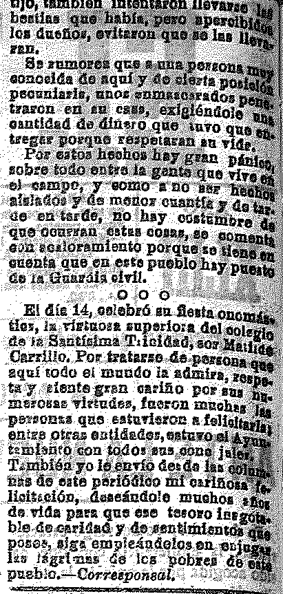 pueblo. Fiesta onomástica de la superiora de las monjas.