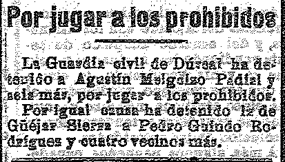 31 de marzo de 1921. Detención en Dúrcal por jugar a los