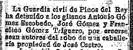 8 de marzo de 1921. Detención en Pinos del Rey por creer que