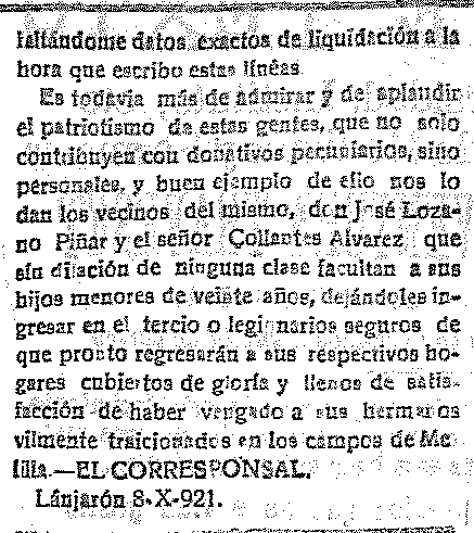 11 de octubre de 1921. Lanjarón y la guerra de Marruecos