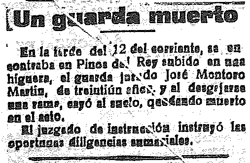 21 de septiembre de 1921. Un guarda de Pinos del Rey muere al