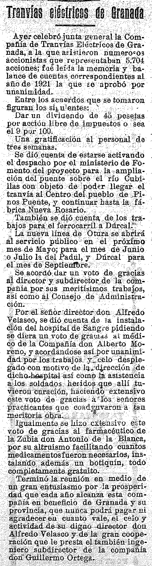 1 de abril de 1922. junta de Tranvías eléctricos de Granada.