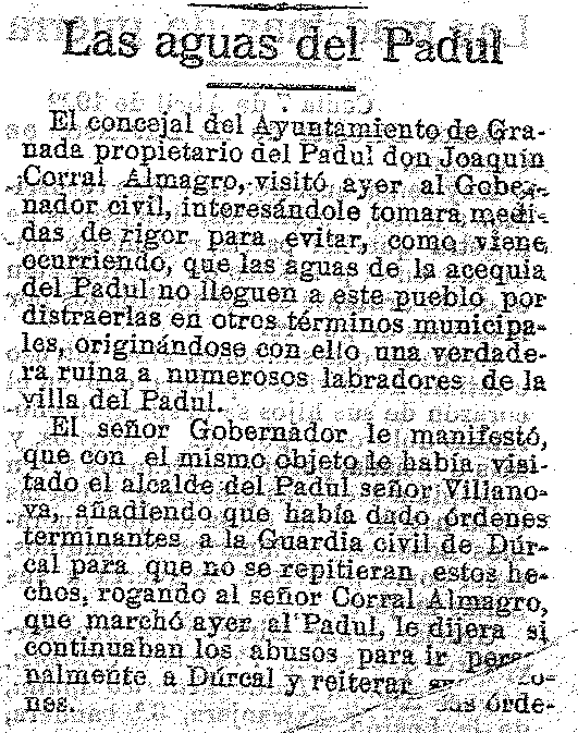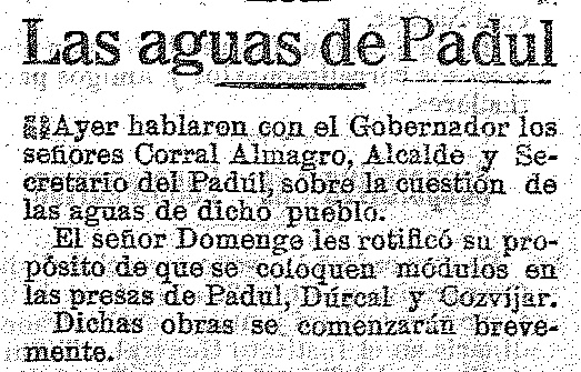 23 de abril de 1922. Las aguas del Padul no llegan a este