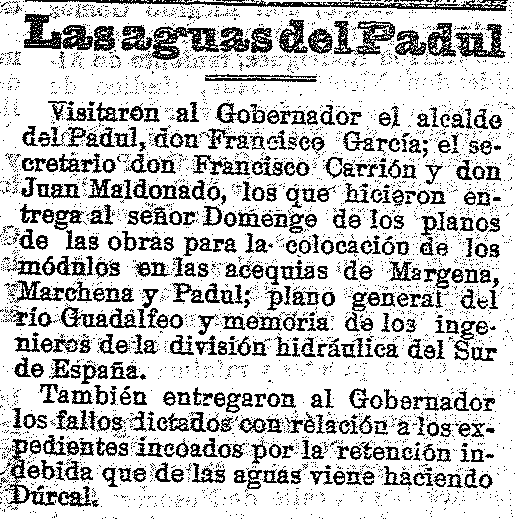 para el reparto de aguas entre Padul, Dúrcal y Cozvíjar