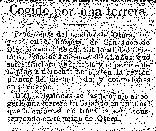 18 de mayo de 1922. Cogido por una terrera en Otura un obrero
