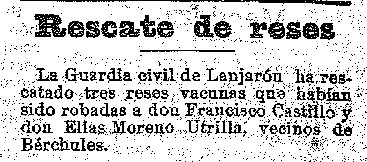 10 de mayo de 1922. Rescate de tres reses vacunas en Lanjarón