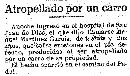 27 de mayo de 1922. Atropellado por un carro en el camino del