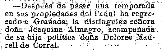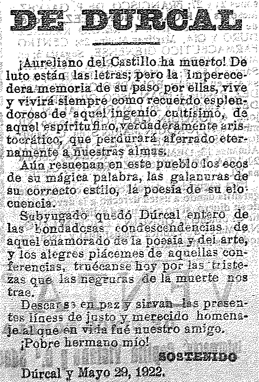 30 de mayo de 1922. Desde Dúrcal ante la muerte de Aureliano