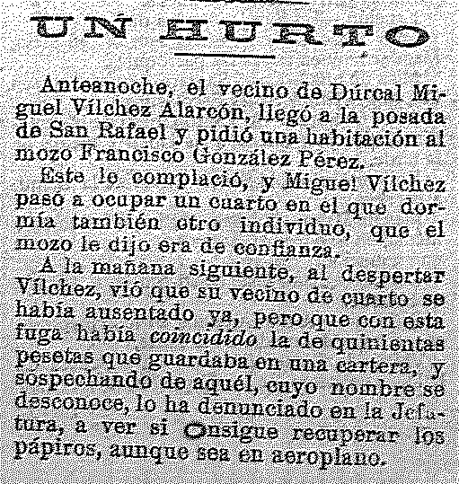 7 de mayo de 1922. Un vecino de Dúrcal es robado en la posada