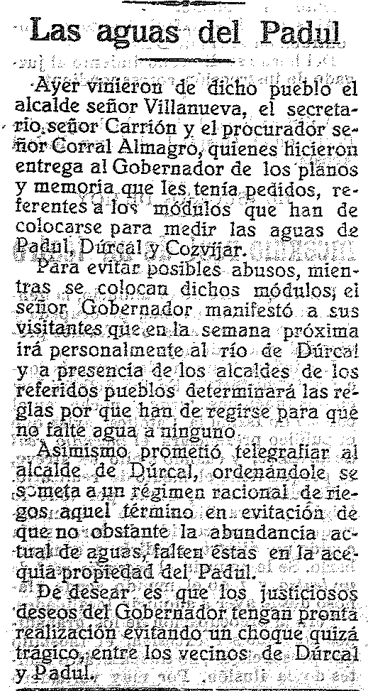 7 de mayo de 1922. Las aguas del Padul en disputa con Dúrcal