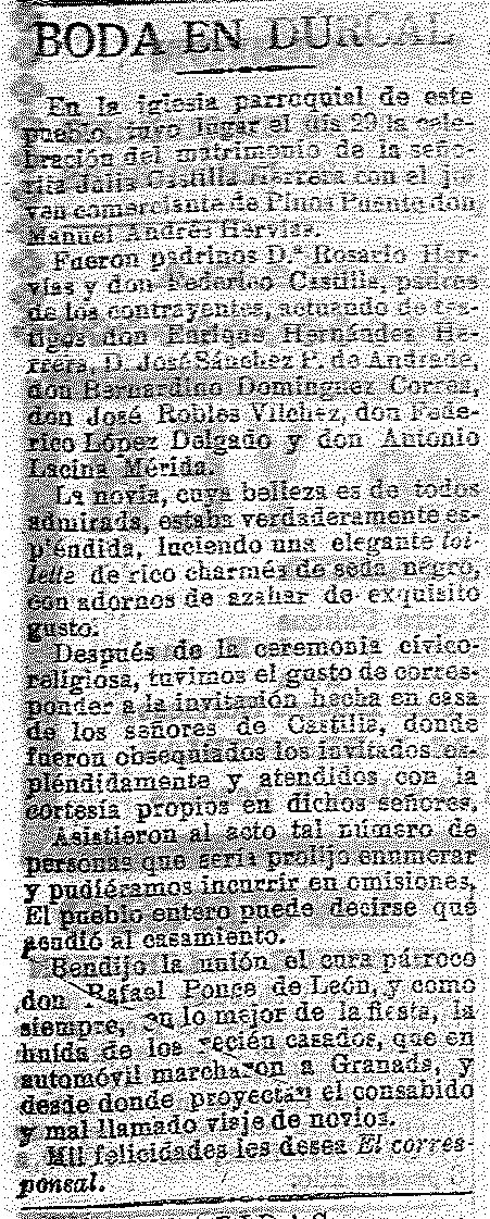 1 de noviembre de 1922. Boda de la burguesía de Dúrcal