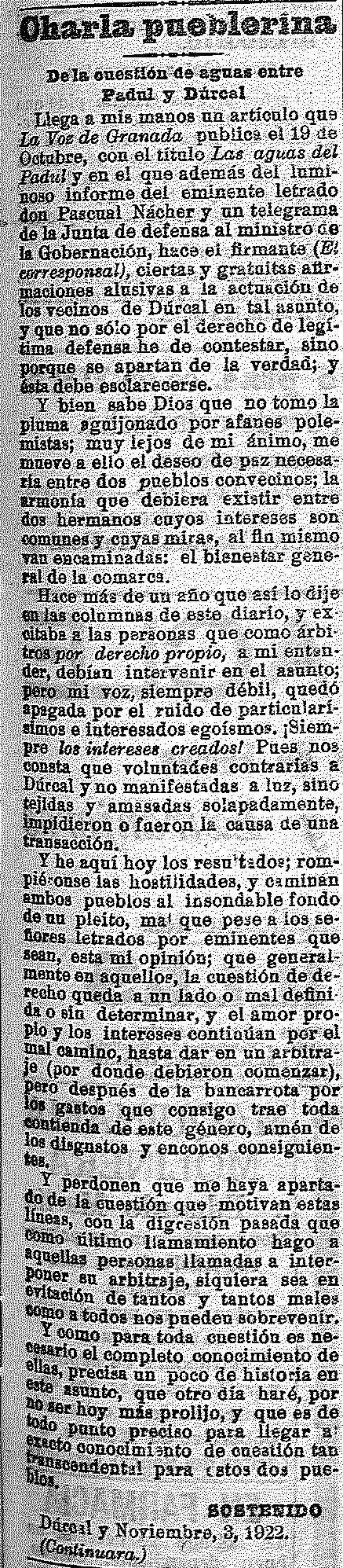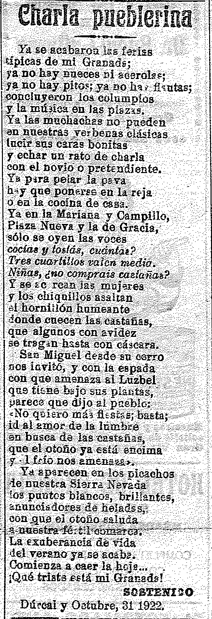 2 de noviembre de 1922. Charla pueblerina desde Dúrcal