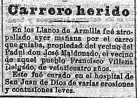 9 de noviembre de 1922. Un carrero de Padul atropella a un