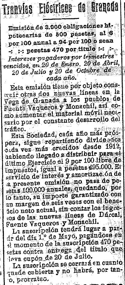 29 de abril de 1923. Emisión de acciones de Tranvías