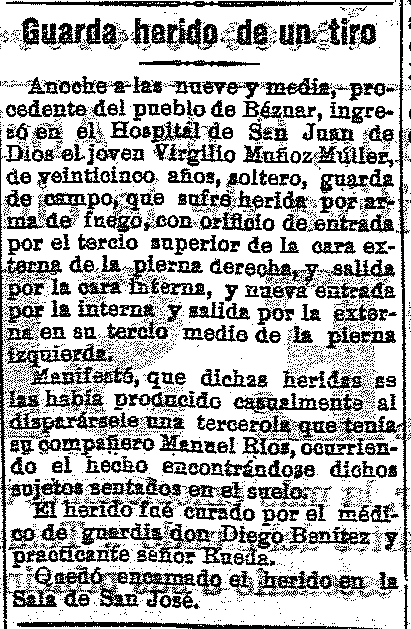 5 de abril de 1923. Herido un guarda del campo de Béznar