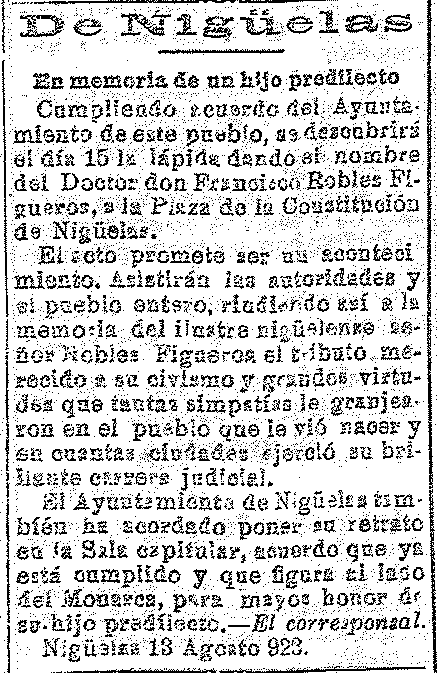 17 de agosto de 1923. Se descubre la lápida en Nigüelas al