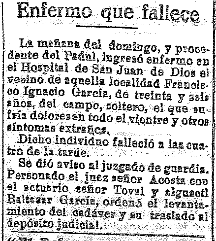 7 de agosto de 1923. Enfermo procedente del Padul fallece en