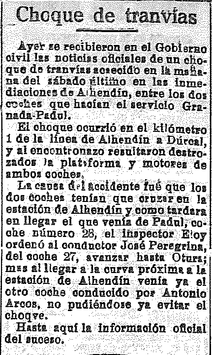 8 de agosto de 1923. En Alhendín chocan dos tranvías de la