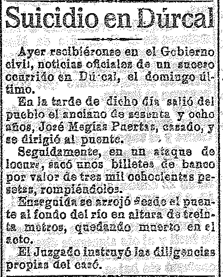 9 de agosto de 1923. Un anciano fallece al tirarse por el