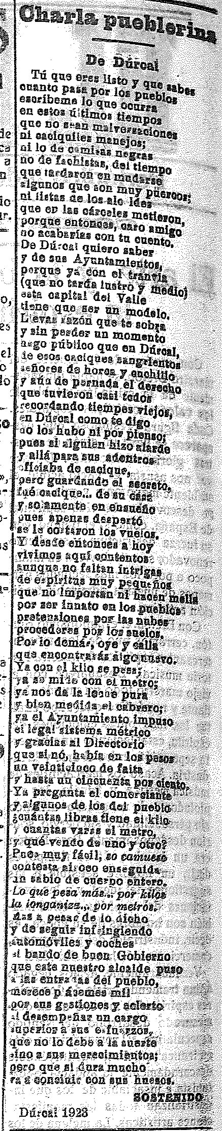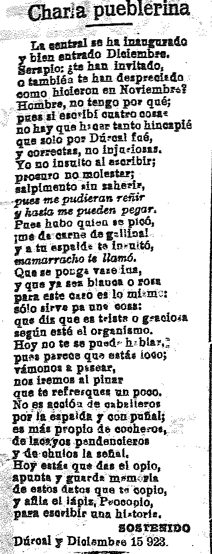 12 de diciembre de 1923. Charla pueblerina desde Dúrcal