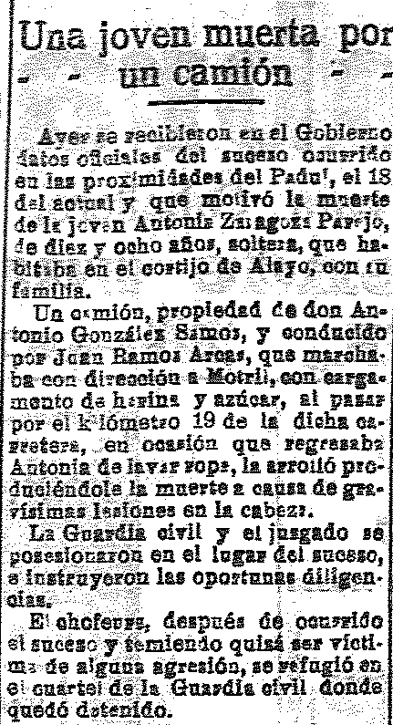 21 de diciembre de 1923. Una joven de Padul muerta por un