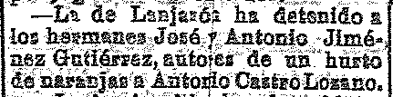 28 de diciembre de 1923. Detención en Lanjarón por robar