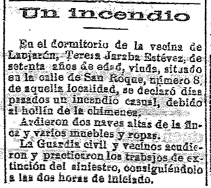 20 de junio de 1923. Incendio en Lanjarón por el hollín de la chimenea