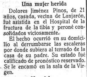 1 de marzo de 1925. Mujer de Lanjarón herida al caerse
