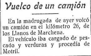 31 de marzo de 1925. Vuelca un camión en los llanos de