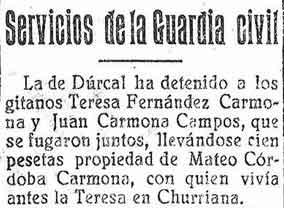 10 de septiembre de 1925. Detención en Dúrcal por robo y en