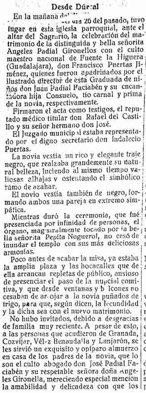 19 de septiembre de 1925. Boda en la burguesía de Albuñuelas