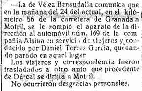 29 de septiembre de 1925. Se avería un coche en Vélez