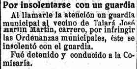3 de septiembre de 1925. Detenido un vecino de Talará por