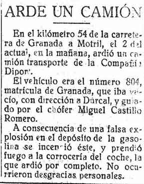5 de septiembre de 1925. Arden en la carretera un camión de