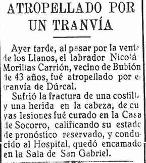 7 de septiembre de 1925. El tranvía de Dúrcal atropella a un