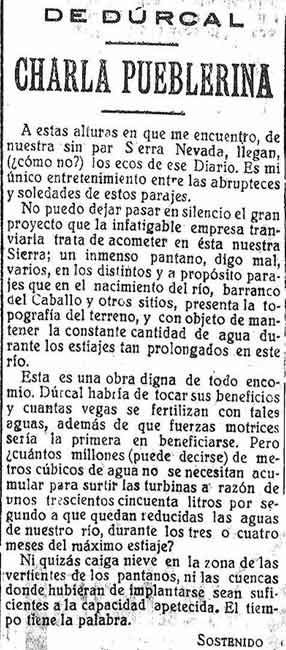 en la Sierra de Dúrcal para almacenaje de agua que produzca electricidad en la